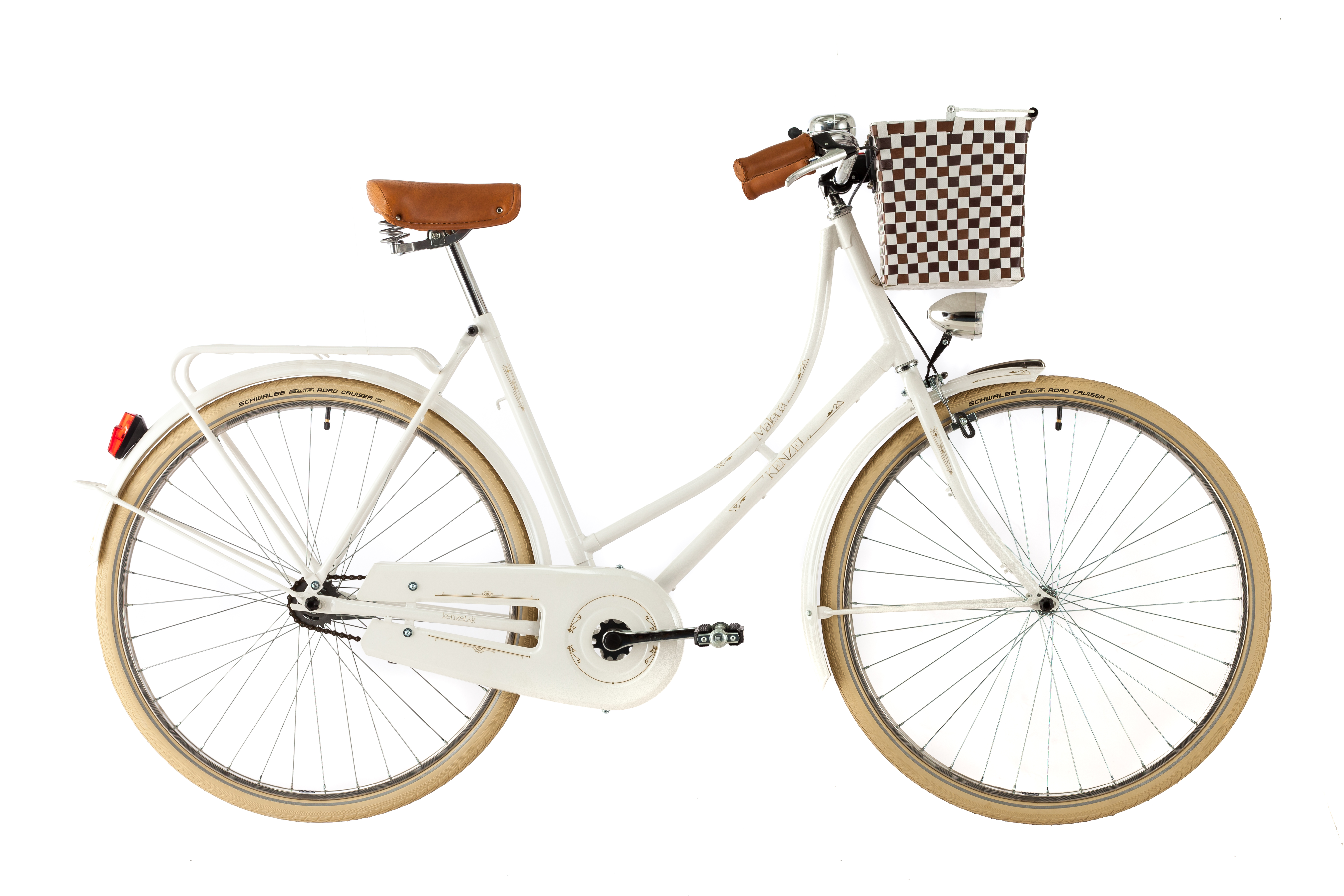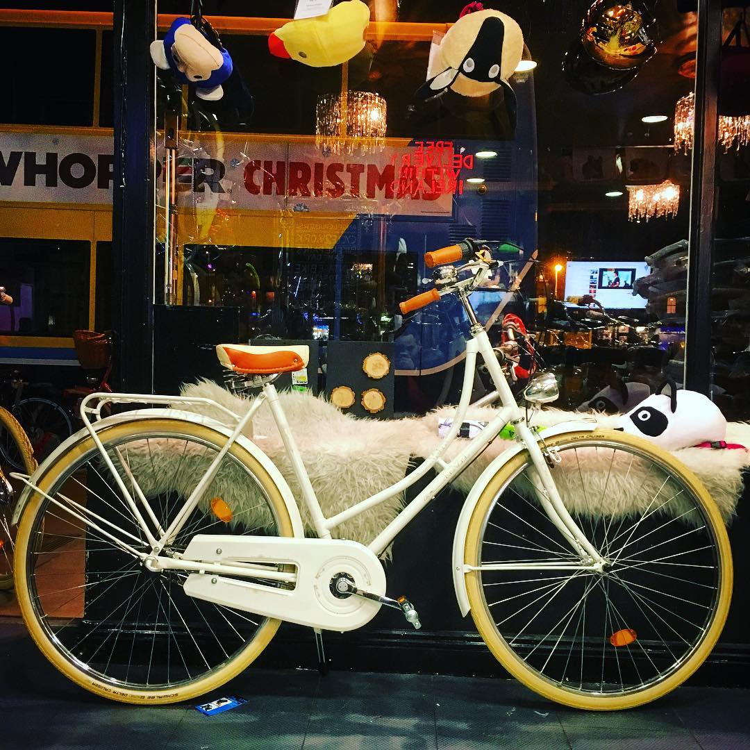 - Malena with gears is our most popular bike at the moment I guess it is because on the surface it appears very classic with great light frame and low profile chrome wheels and Italian saddle but when you look closer you realize there is very modern side to this bike as well with latest hub gears the bike cycles very easy and shifts smooth when you need it, Kevlar reinforced tires will mean that you never be late for work because of a puncture again and hi-vis stripes on their walls will keep you visible and safe as well as the low consumption LED build in lights that last whole year on one set of batteries. So if you are over 5’6″ or brave come for a test ride and see the whole range of colors for this model.