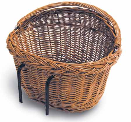 | Wicker bike basket in a classic oval shape with ‘belly’. Hooks onto front handlebars or rear bike rack. Has a handy handle for carrying around when off your bike. Varnished natural.Dimensions: 39*27*22cm Fastening system: Hooks | |