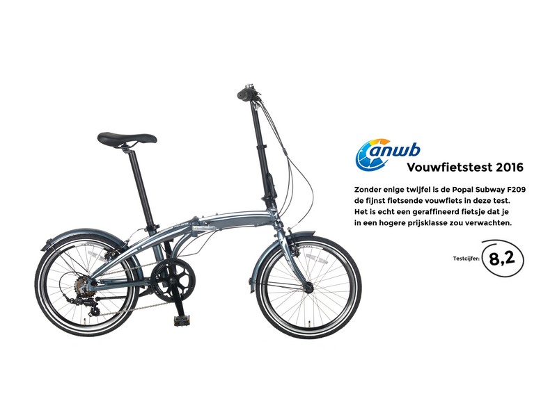 The Popal Subway F209 is a light and sporty-looking folding bike. It folds and unfolds easily through the patented system. Ideal for short journeys, or to take on public transport, or even on (car) Holidays! The bike rides smoothly through the six Shimano gears.